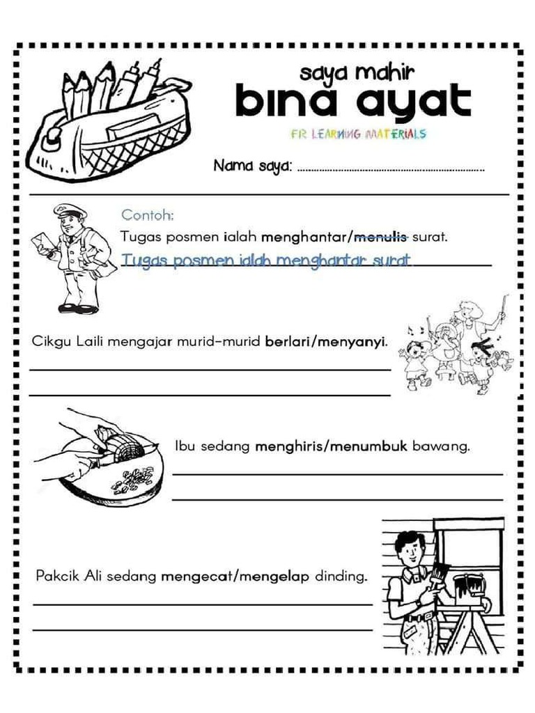 Subjek aktiviti lokasi alat motif. Ali adalah anak bapa kerana. Contoh Ayat Perkataan laporan.